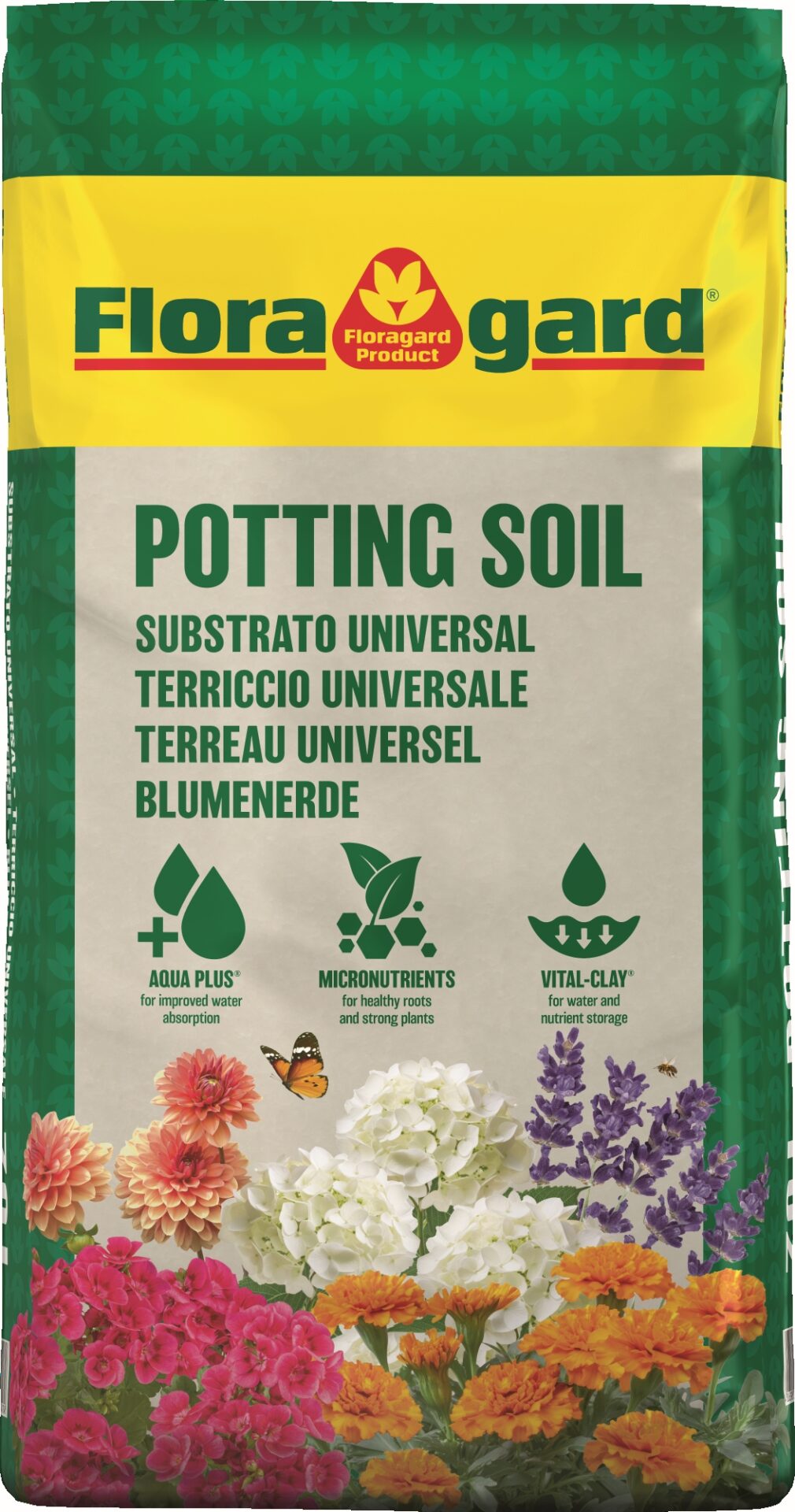 Univerzálny substrát je vhodný na výsadbu a presádzanie izbových, balkónových a okrasných rastlín v záhonoch skleníkoch alebo kvetináčoch. Črepníkový substrát Floragard podporuje silný rast a bohaté kvitnutie rastlín. Obsah živín v substráte vystačí rastlinám až na 8 týždňov.