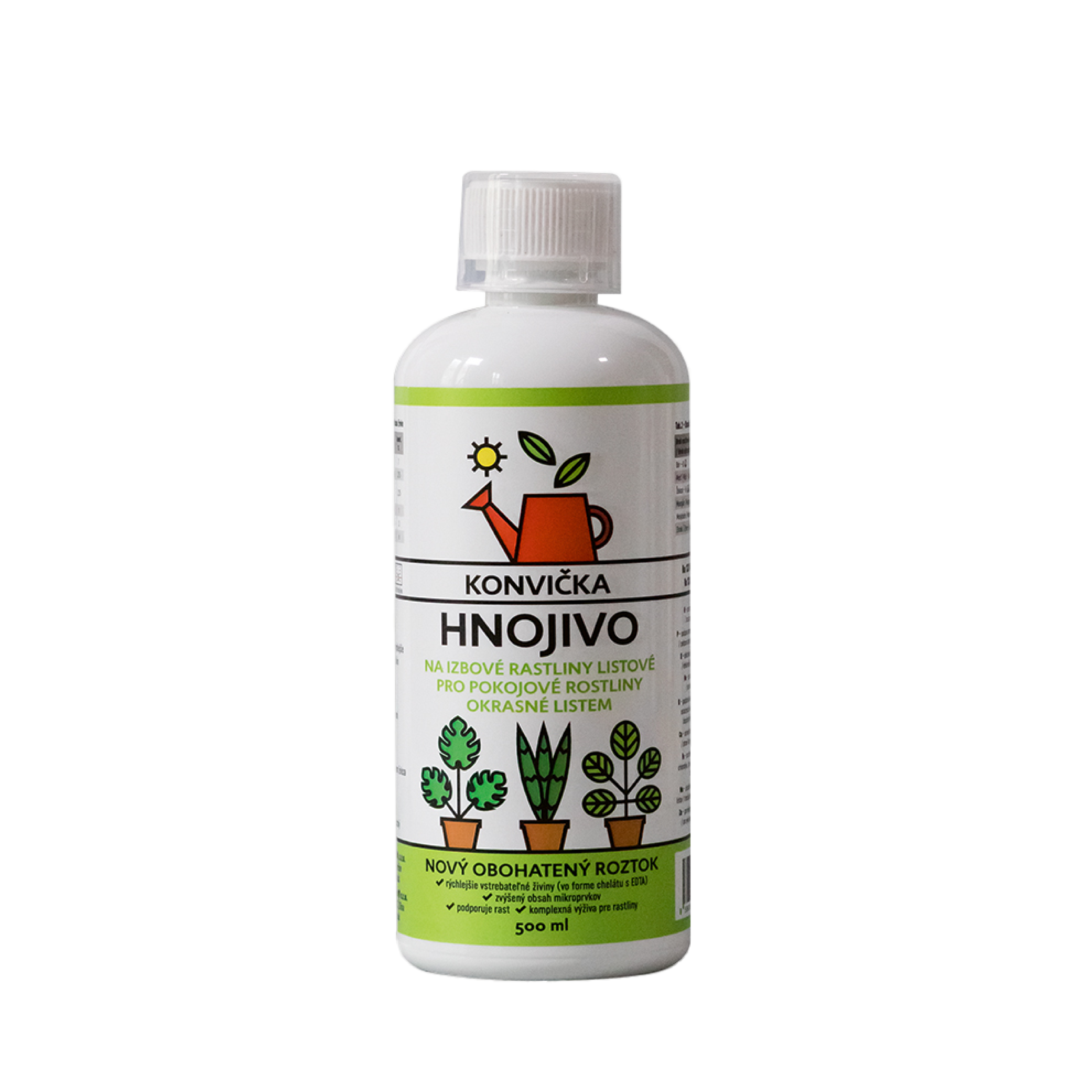 Obsahuje dusík, fosfor, draslík a mikroprvky vo forme chelátu s EDTA pre rýchly príjem živín. Týmto svojím špecifickým zložením zabezpečuje komplexnú výživu pre izbové rastliny okrasné listom. Zlepšuje účinok rastlinných enzýmov, podporuje tvorbu koreňového systému, dobrý rast, bohatú a intenzívnu tvorbu nových listov a udržuje výborný zdravotný stav.