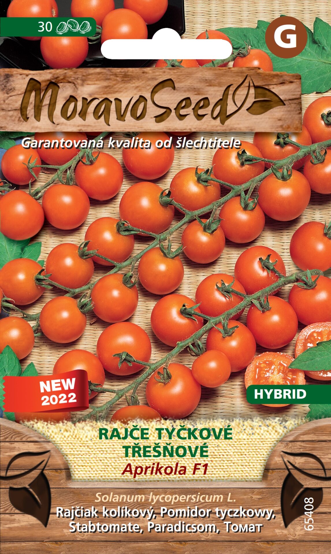 Paradajka tyčková APRIKOLA F1 je kvalitná odroda paradajka tyckova, vhodná na pestovanie v záhrade aj na poli. Raná hybridní odrůda tyčkového cherry rajčete s atraktivními oranžovými plody s výrazně nasládlou chutí a příjemnou konzistencí.