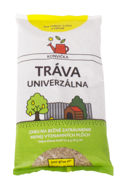 Univerzálna tráva - zmes na bežné zatrávnenie menej významných plôch, 500 g / 20 m². Odporúčame kosiť na 4,5 až 5 cm.