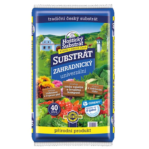 HOŠTICKÝ ZÁHRADNÍCKY SUBSTRÁT je vyrobený zo zmesi svetlej a tmavej rašeliny, kvalitného vytriedeného kompostu a minerálneho viaczložkového hnojiva Cererit (NPK 8-13-11+2MgO + 15S + B, Cu, Mo a Zn).